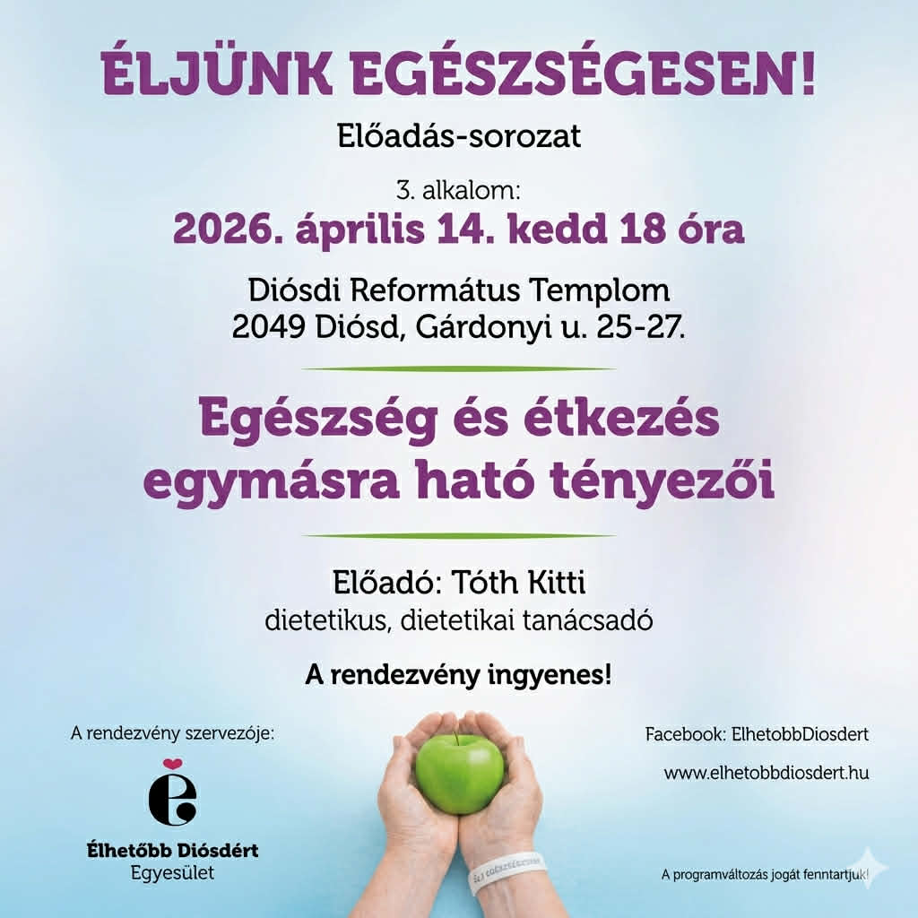 Folytatódik az „Éljünk egészségesen” előadás-sorozat a református templomban április 14-én.