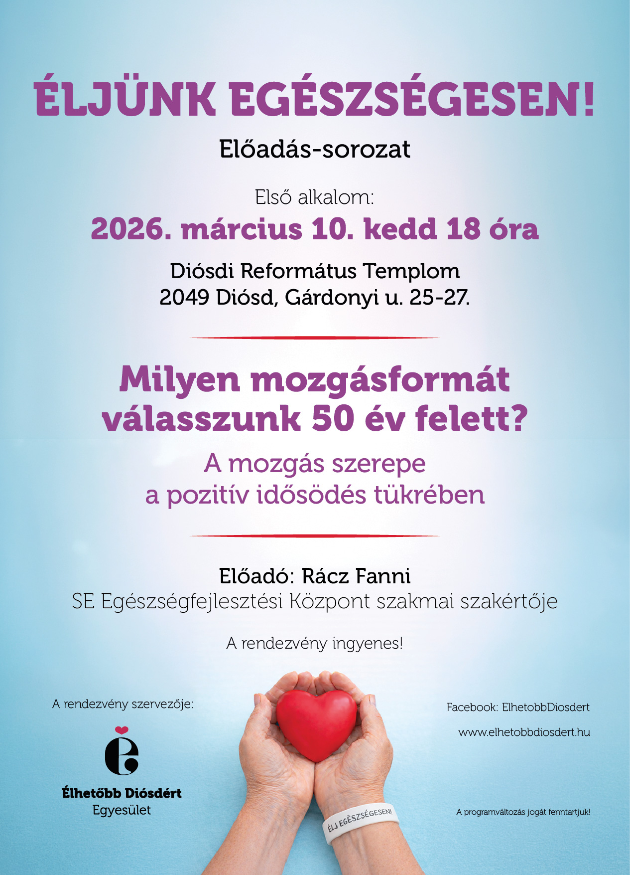 Milyen mozgásformát válasszunk 50 év felett címmel március 10-én, 18 órakor.