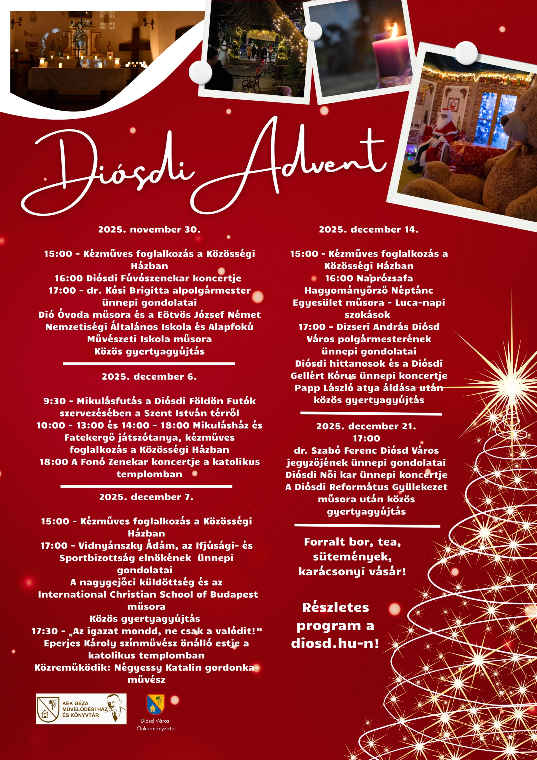 Szeretettel hívjuk a város apraját-nagyját! Közös gyertyagyújtással, ünnepi műsorokkal, koncertekkel, kézműves foglalkozásokkal, mikulásfutással és a tavaly már nagy sikert aratott Mikulásházzal várjuk a kicsiket és nagyokat egyaránt.